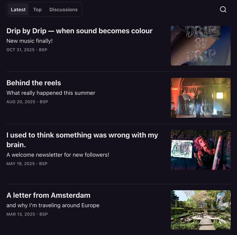 BSP’s creative journey is fueled by synesthesia. Sound becomes colour, shaping the way she creates and performs. Growing up, BSP often felt overwhelmed by the mental health struggles in her family. Synesthesia became her escape, a way to turn chaos into something beautiful. Today, it’s her way of challenging perception itself. Her work is not simply about music or painting; it’s about reshaping how we experience reality.