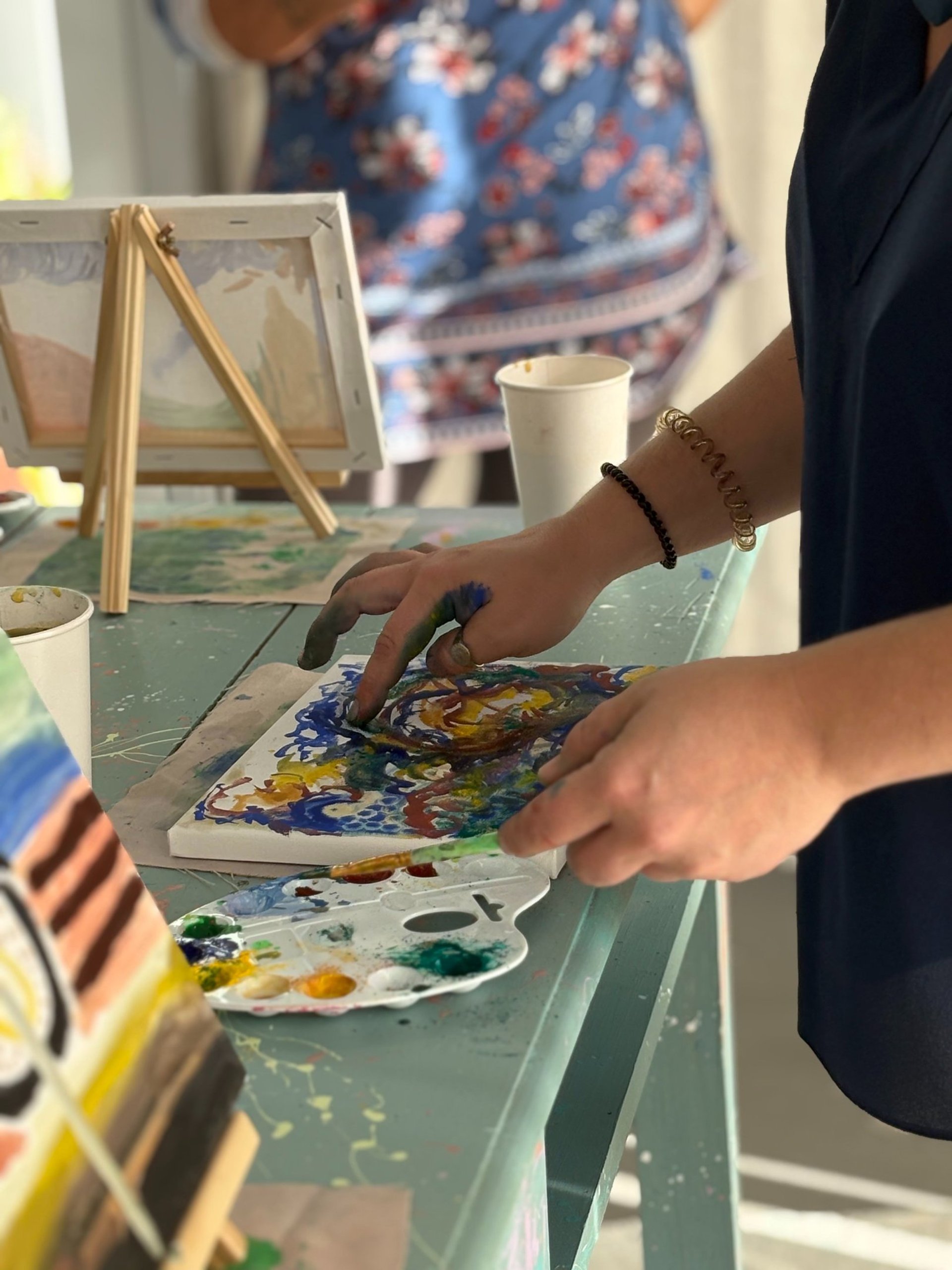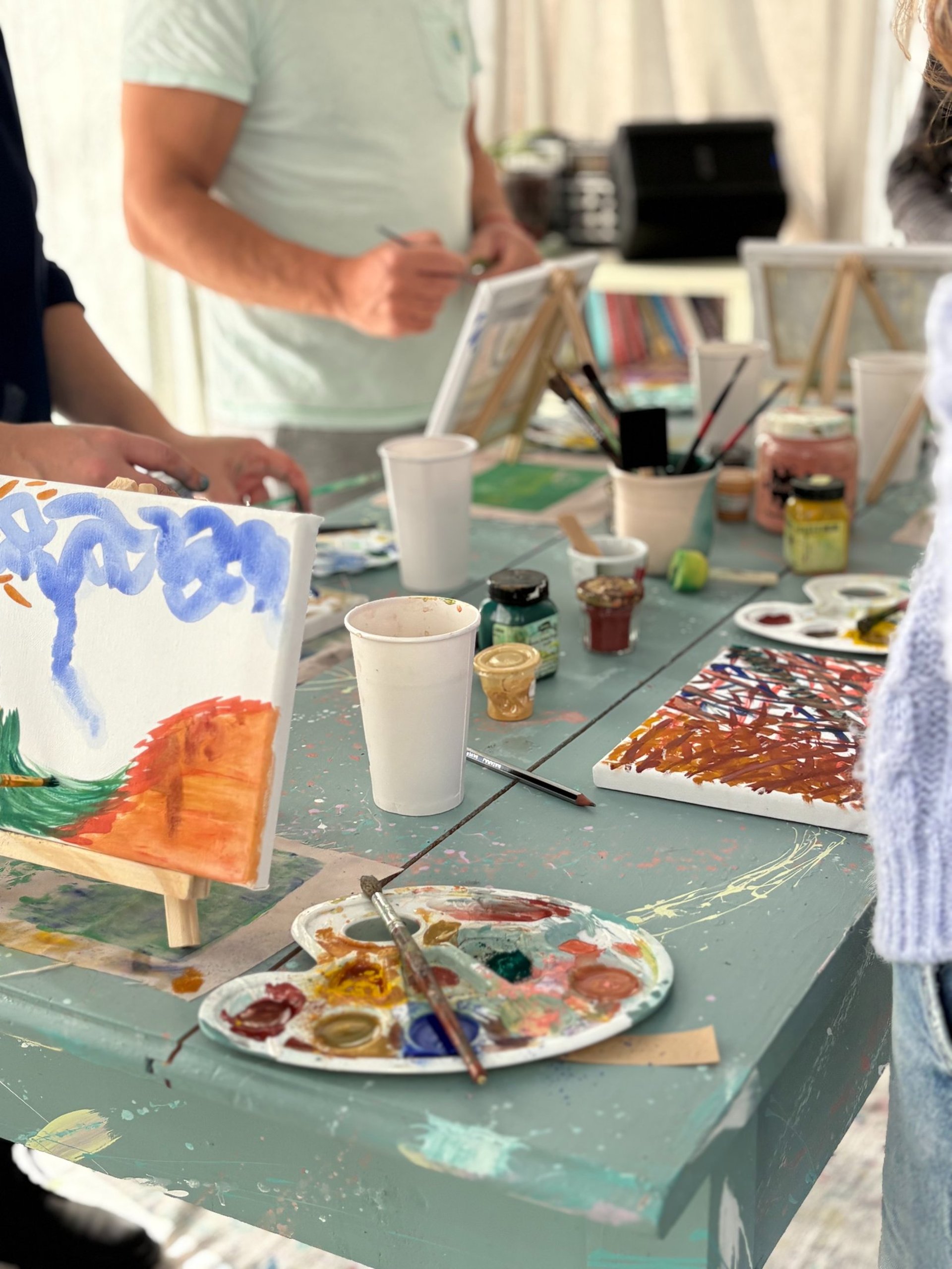 Throughout the "Liquid Sounds" workshop, you’ll be encouraged to let go of any inhibitions, tap into your creativity, and express yourself freely through art. Before the workshop, you’ll choose your most significant song, one that’s deeply connected to a person, place, feeling, or memory. This will help us trigger emotions through music during the session. We’ll create a collaborative playlist featuring everyone’s musical choices, and if you’d prefer, your selection can stay anonymous. As we explore music and emotions together, you’ll have the chance to paint, connect with others, and enjoy a relaxed, social atmosphere. To keep the experience enjoyable, there’ll be drinks (wine, juices, water) and snacks to fuel your creativity.
